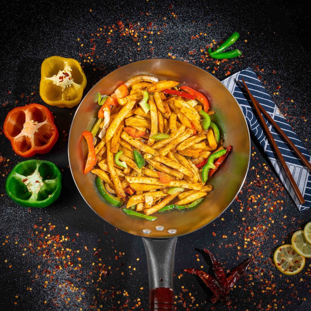 £3.95Golden chips tossed with peppers, onions, chilli and that sidgnature Nudon seasoning. Hot, salty, spicy - and seriously addictive.