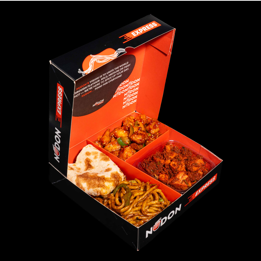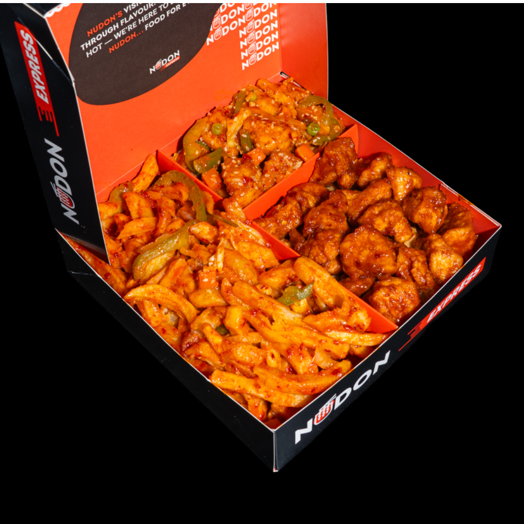 £8.99The best of everything, all in one box. Contains our customer favourites of Udon Noodles, Egg Fried Rice, Chilli Chicken, Crispy Chicken. Its the full Nudon experience in every bite!